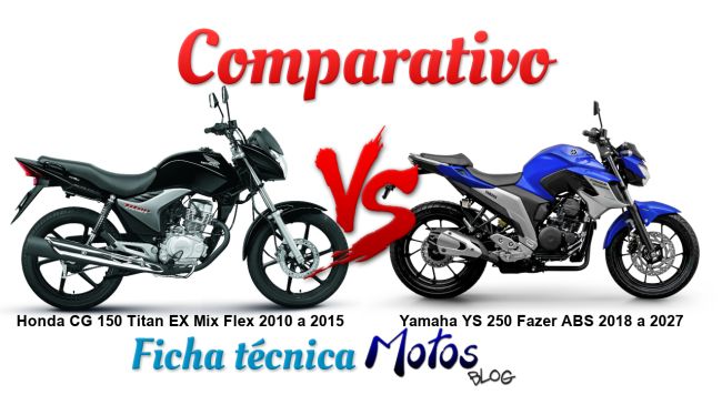 Comparativo entre Honda CG 150 Titan EX Mix Flex 2010 a 2015 e Yamaha YS 250 Fazer ABS 2018 a 2027